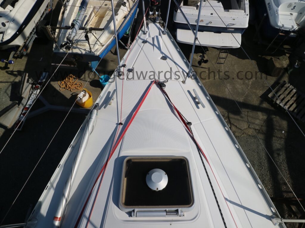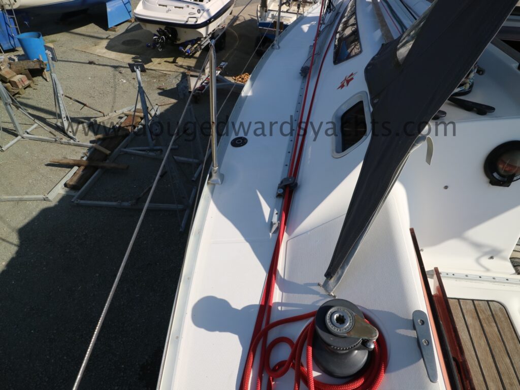 Aluminium mast and boom. Slab reefed mainsail (2023) and a furling genoa (UV strip 2022). Cruising chute (2022). Spinnaker. Spinnaker pole. Sail bag, sprayhood and spray dodgers (2022). Self tailing winches. New standing/ running rigging (2022).