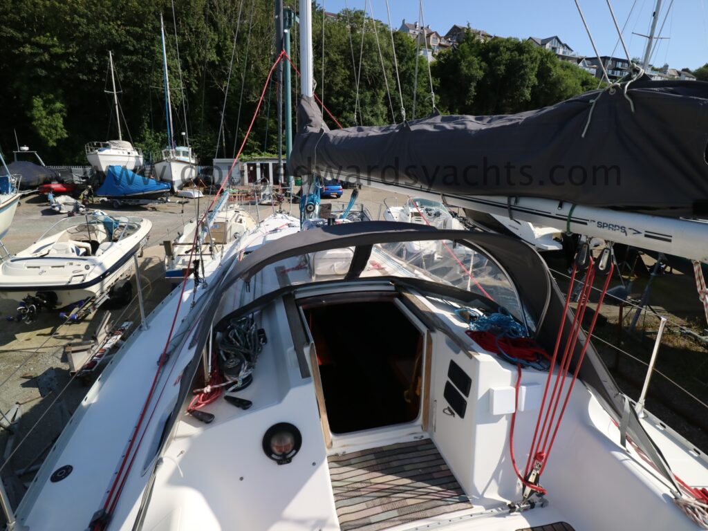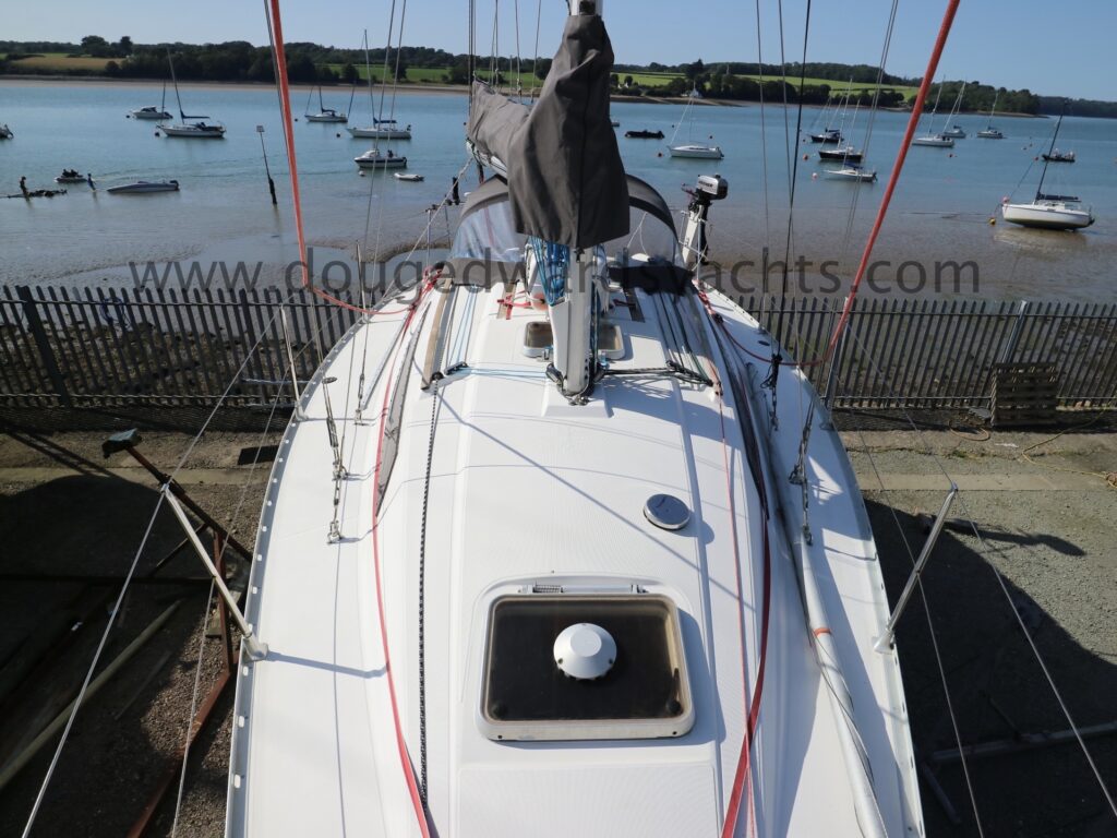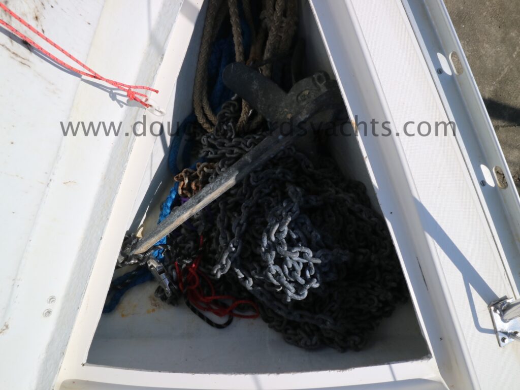 CQR anchor with 50m of 10mm chain. Stainless steel pulpit, pushpit, stanchions and guard wires. Boom mounted zipped mainsail cover (new 2022). Sprayhood and spray dodgers (new 2022). Boarding ladder. Fenders and warps.