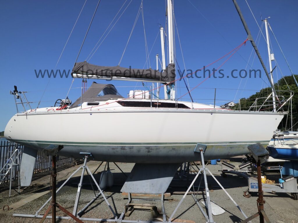 Jeanneau Sun Light 31 (1990) Fin Keel Sailing Yacht. Yanmar 18hp diesel engine. 7 berths. Slab reefed mainsail (2023) and a furling genoa (UV strip 2022). Cruising chute (2022). Spinnaker. Spinnaker pole. Sail bag and sprayhood. Raymarine GPS chartplotter with AIS transceiver (2022). Autohelm depth/ speed/ log and NASA Clipper wind (2022). Nasa Marine DSC VHF radio, new antenna 2022. Simrad WP32 wheel pilot. Private heads compartment. Pressurised hot water system. Galley. New standing/ running rigging (2022). Lying North Wales, UK.