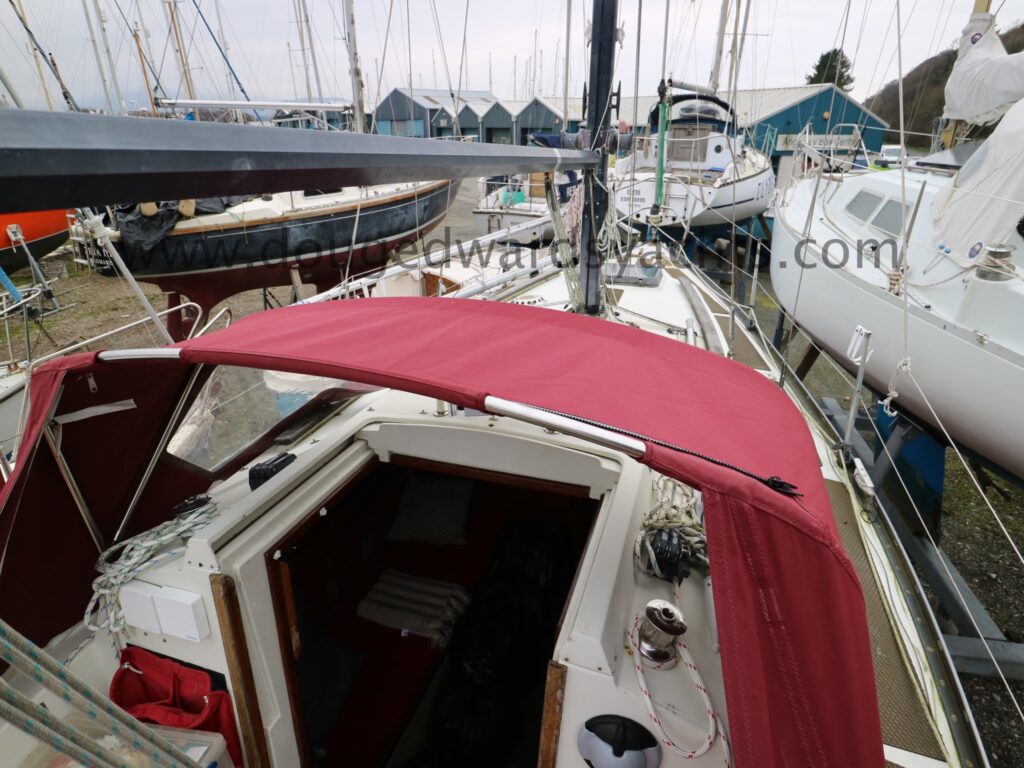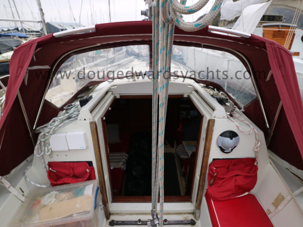 CQR 16lb anchor with 20m chain (2021) and 20m warp (2021). Fishermans kedge anchor. Stainless steel pulpit, pushpit, stanchions and guard wires. Sprayhood (2013). Spray dodgers (2013). Sail bag with lazy jacks (2013). Cockpit tent (2022). Cockpit cushions (2018). Cockpit table. Boarding ladder. New windows 2022. Fenders and warps.