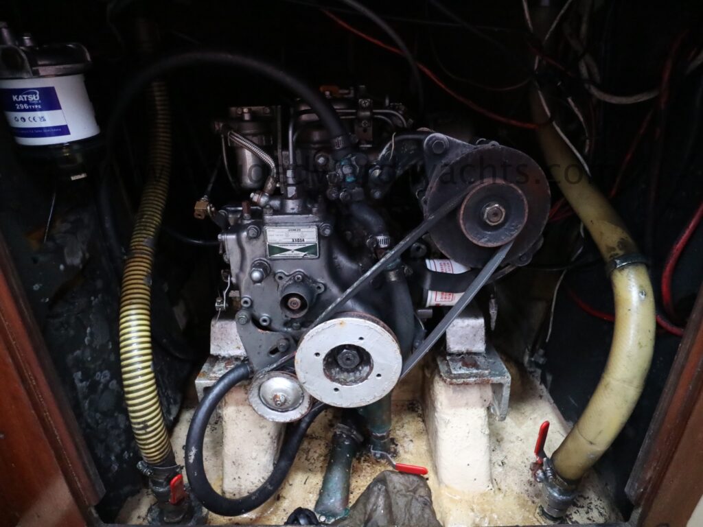 Yanmar 19hp diesel engine (2003) driving three blade propellor via shaft. 2x 130ah batteries (2018) charged by engine alternator. Shorepower connected with charger. Solar charging. 45litre stainless steel diesel tank.