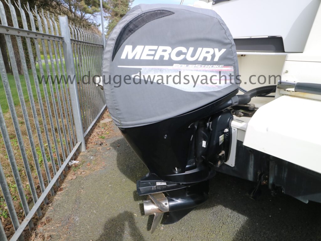 Mercury 150hp four stroke outboard engine (approx 150hrs). 2x Batteries, engine alternator charged. Sidepower bow thruster.