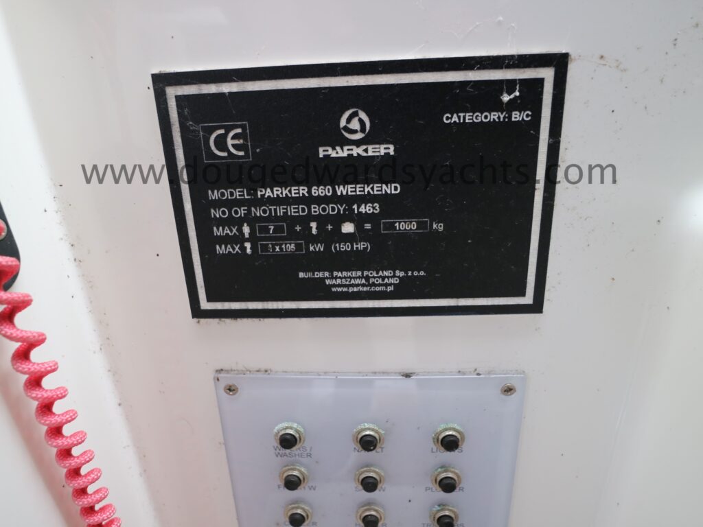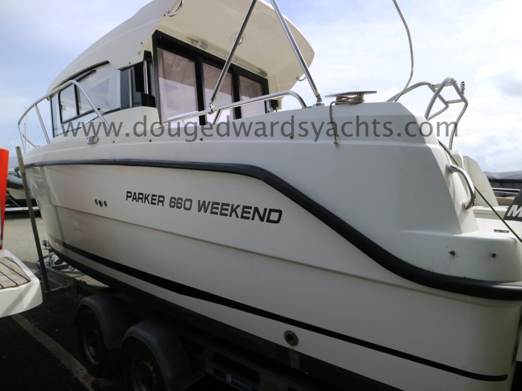 Parker 660 Weekend (2016) Sports Fisher. Mercury 150hp four stroke outboard engine. Bow thruster. 3 berths. Simrad chartplotter/ fishfinder. Simrad RS12 DSC VHF. Fusion bluetooth stereo system. Shorepower. Twin axle launching trailer. Lying North Wales, UK.
