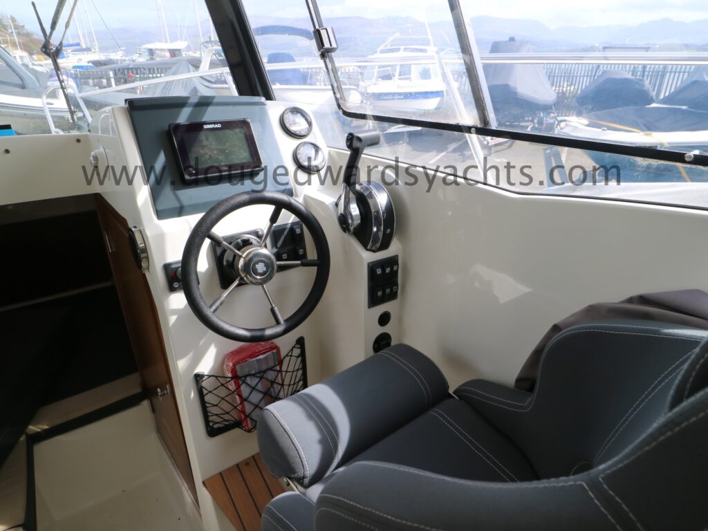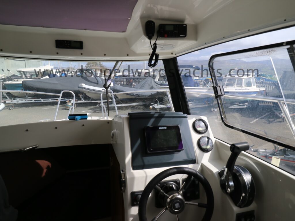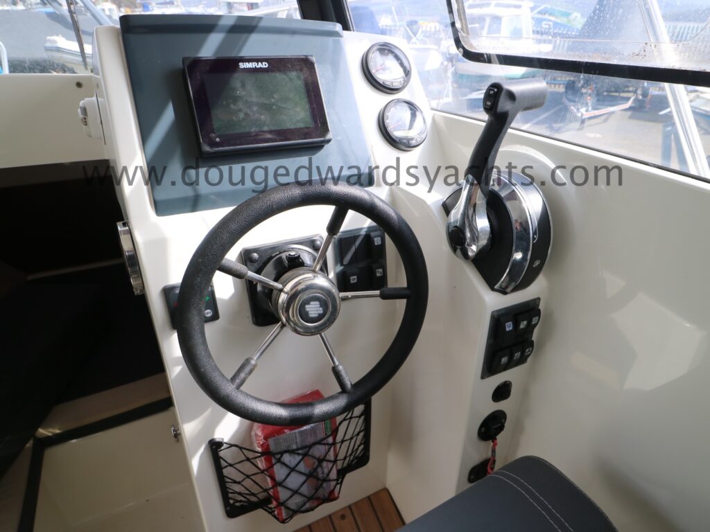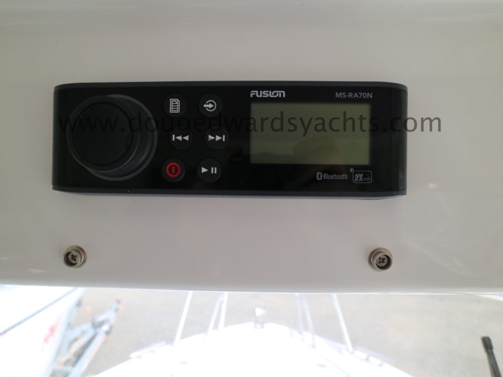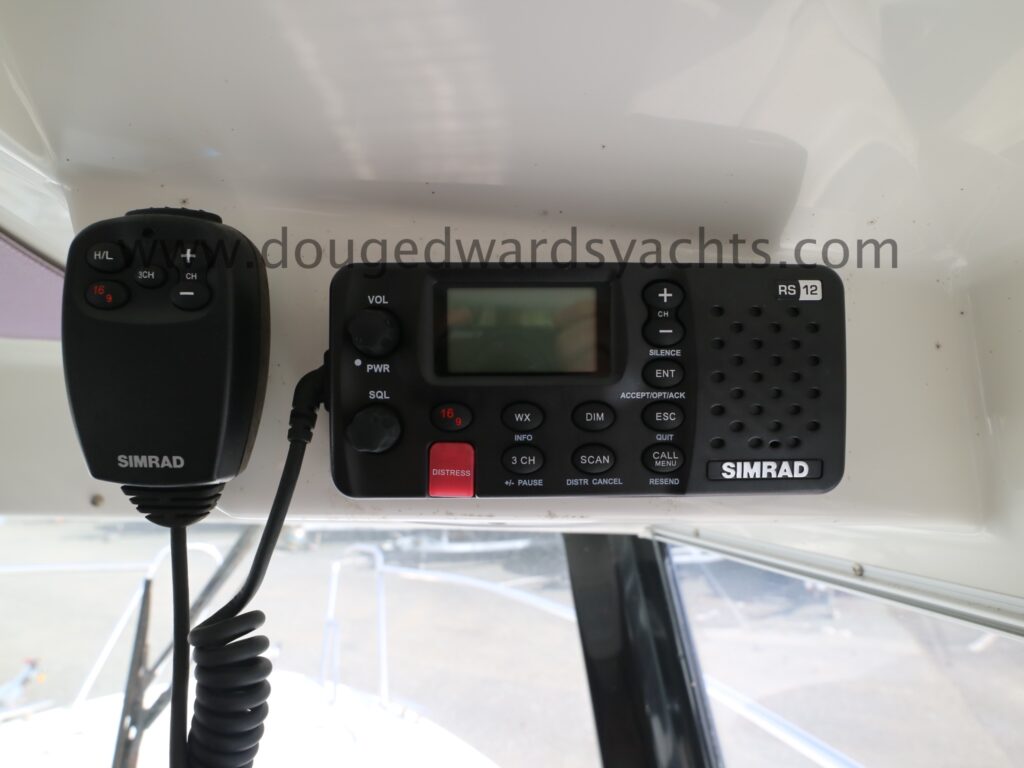 Steering compass. Simrad chartplotter/ fishfinder. Simrad RS12 DSC VHF. Fusion bluetooth stereo system. Navigation lights.