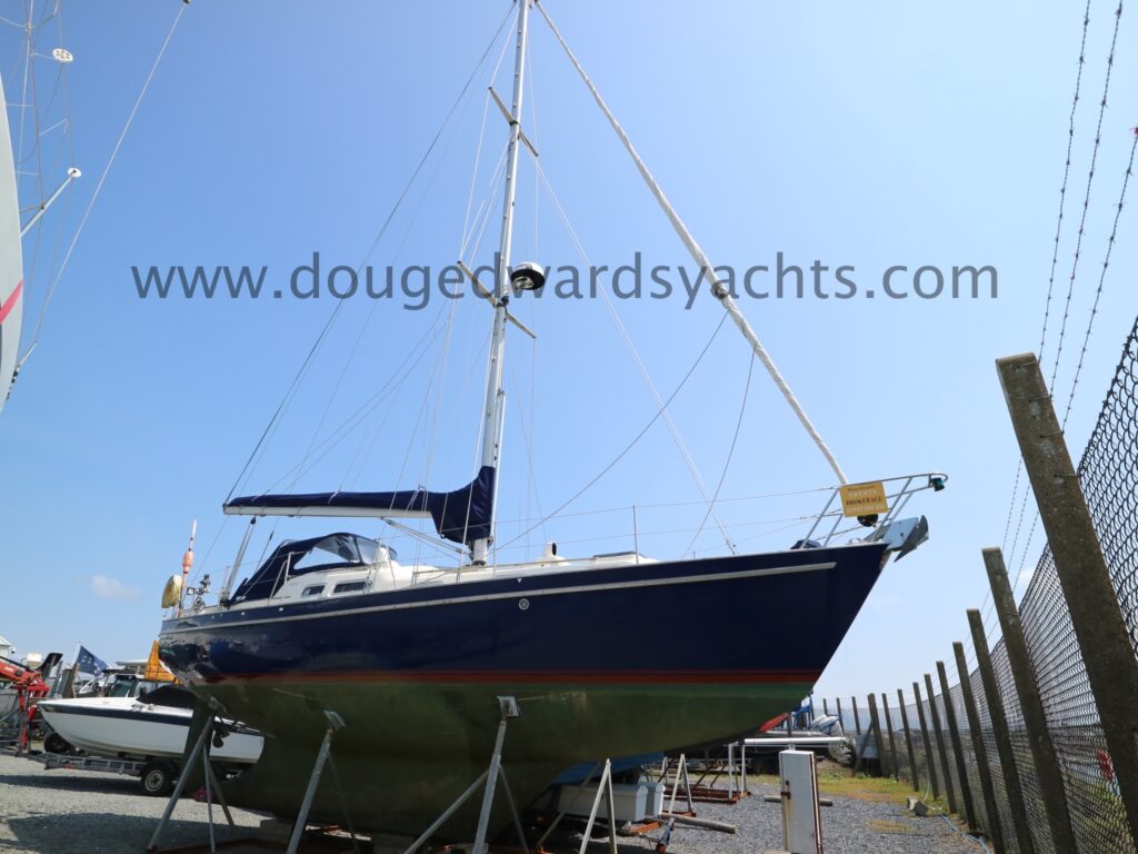 Northshore Yachts Vancouver 34 (1997) Long Keel Cutter Rigged Yacht. Yanmar 27hp diesel engine. Arun dacron mainsail (three reefs), a furling Arun dacron yankee and an Arun dacron staysail (all sails 2011). Spinnaker sail with snuffer. Cruising chute. 6 berths. Hot/ cold pressurised fresh water system. Eberspacher D4 heating system. Heads with shower. Electric windlass. Raymarine Axiom Radar/ GPS chartplotter (with HD digital scanner). Simrad repeater. Digital Yacht AIT2000 Class B AIS transceiver. Stowe Dataline GX speed/log and depth instruments. Raymarine i60 wind instrument. Standard Horizon Eclipse DSC VHF radio. Standard Horizon HX890E DSC/GPS handheld VHF (2023). Raymarine tiller pilot (tiller drive unit and a P70 control head). Solar panels. Hydrovane wind steering. Cockpit enclosure. Hull copper coated in 2012. Lying North Wales, UK.