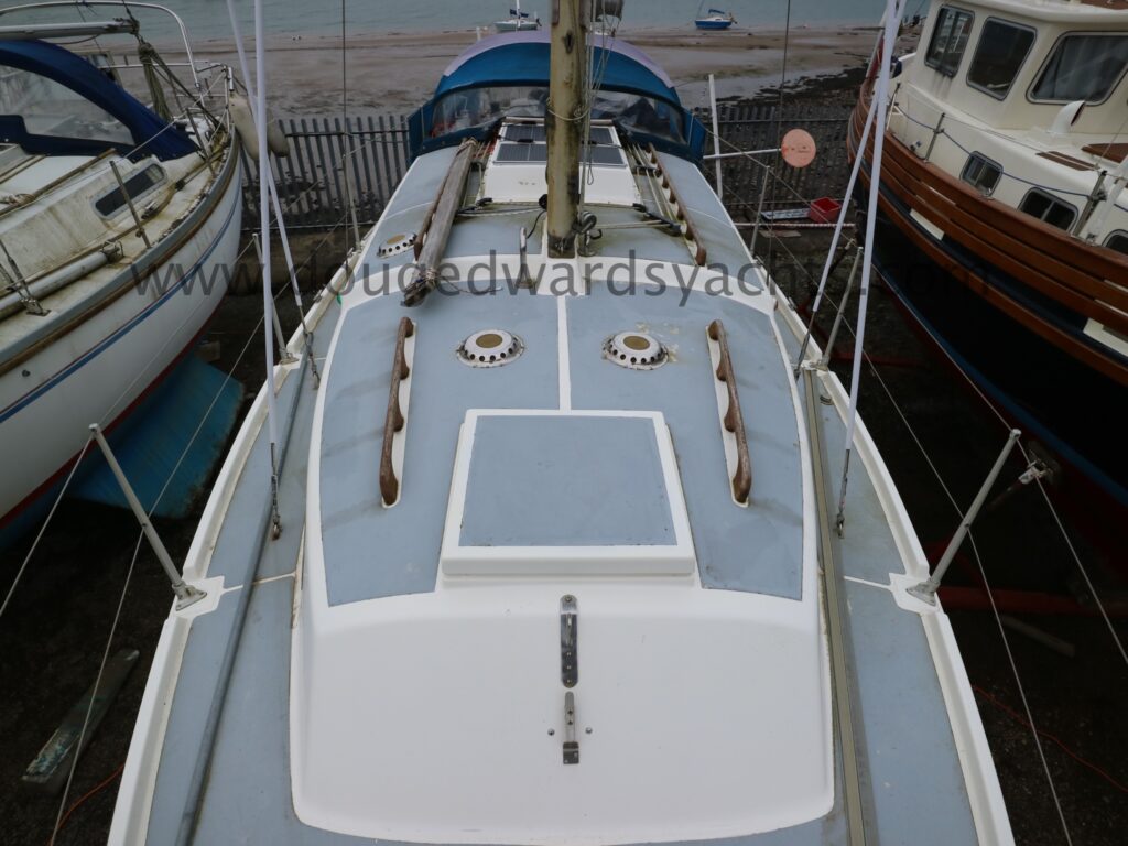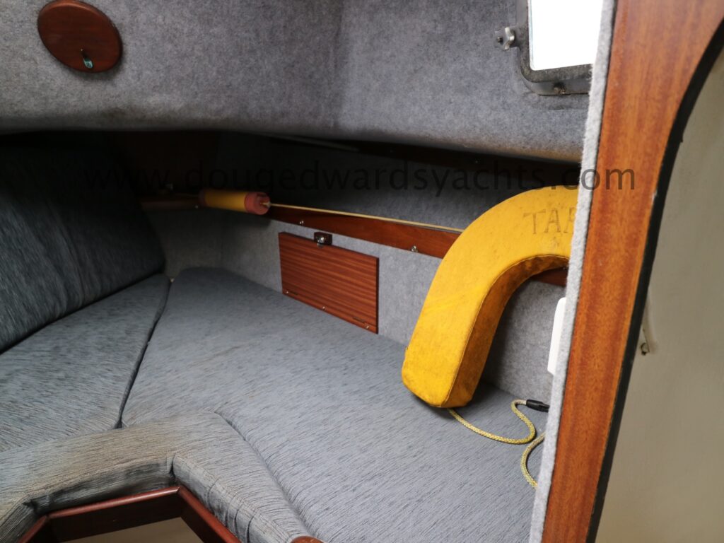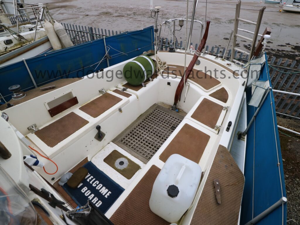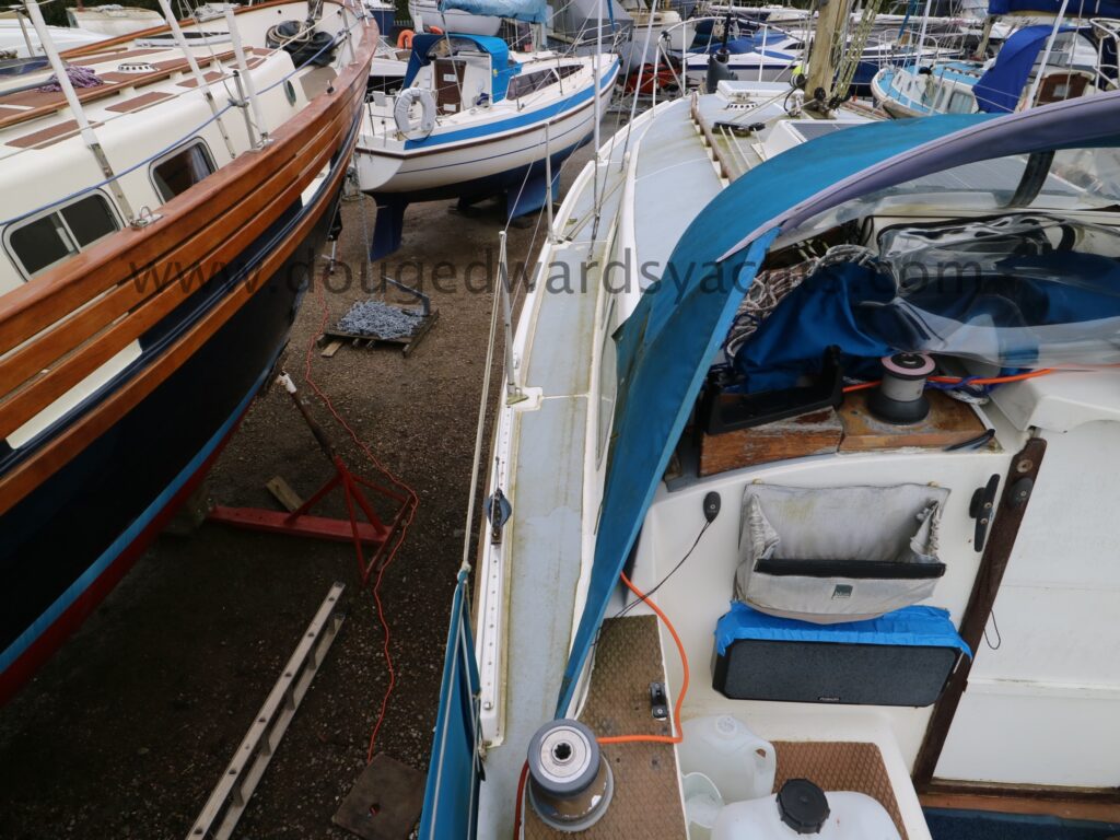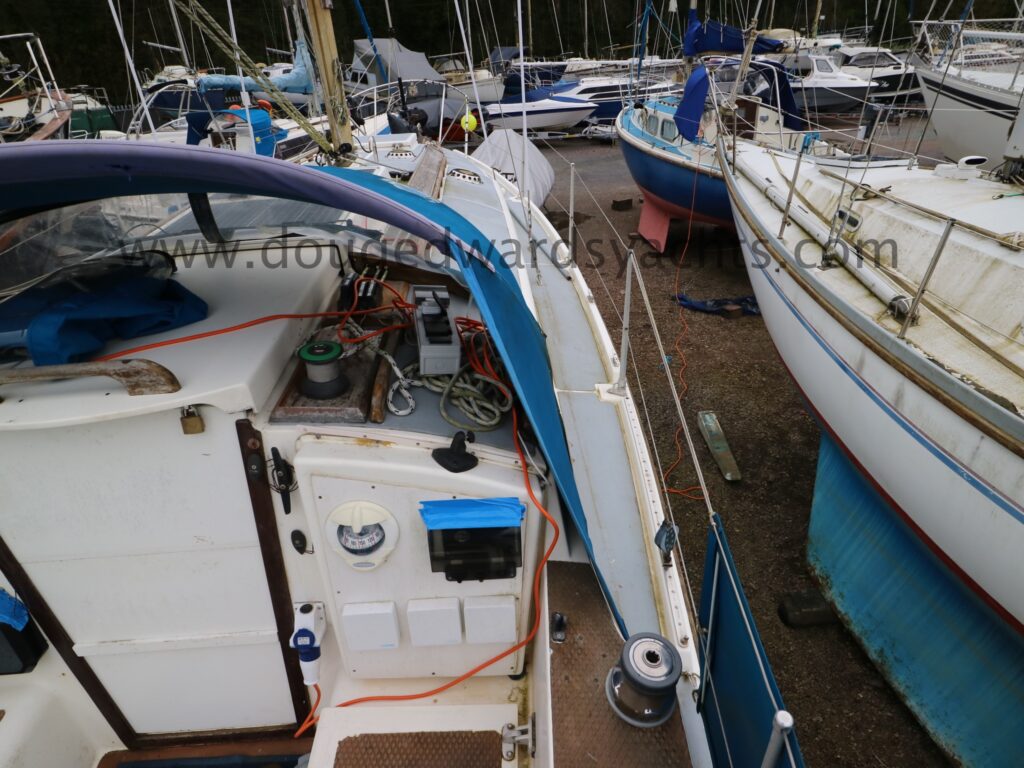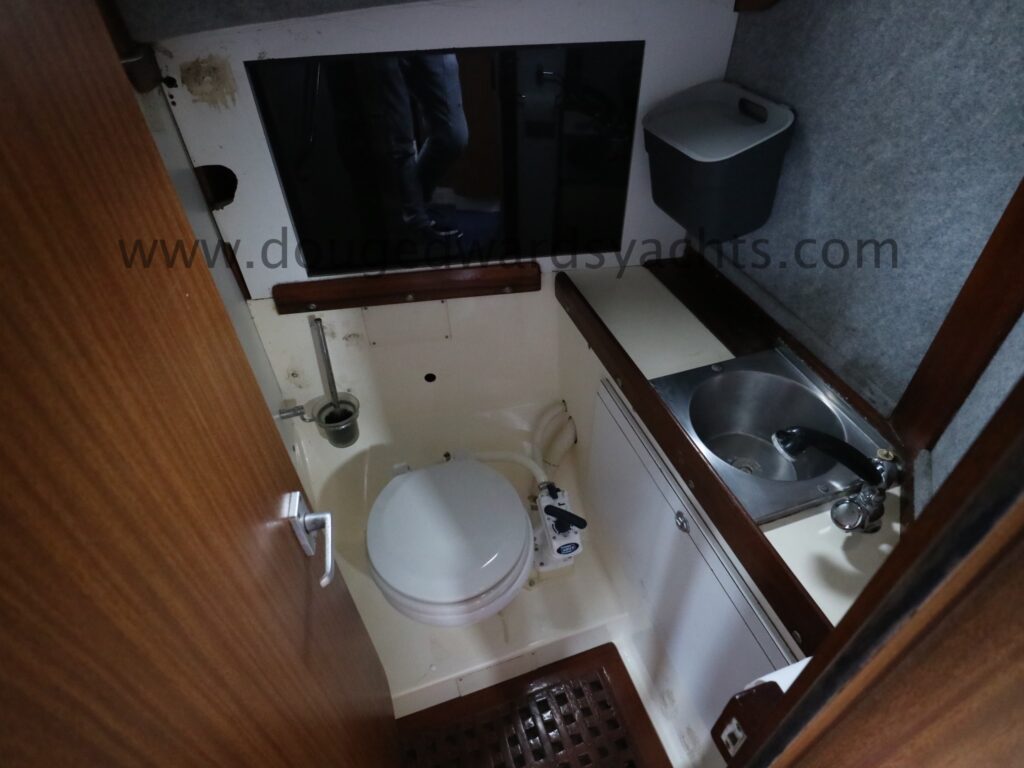 Diesel heater provides hot air heating.The private forecabin has a double ‘V’ berth. There is a marine wc to port and there are two hanging lockers opposite. The saloon has a single/ double settee berth with a dining table and there are two quarter berths aft. The galley has a two burner stove (with oven and grill) and a stainless steel sink with electrically pumped fresh hot/ cold water (new Jabsco pump 2025, hot water calorifier currently disconnected). Pioneer sound system in saloon.